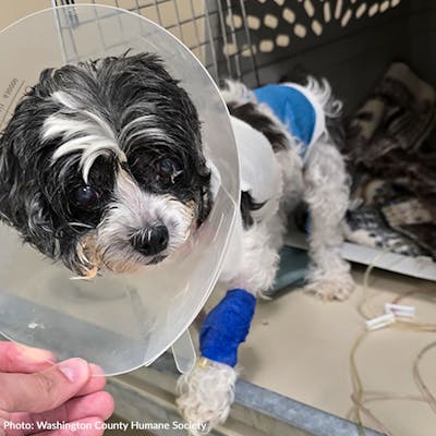 All three of these dogs have complex injuries that will require ongoing treatment to fully heal. Rock has a broken pelvis and leg injury that may require amputation.